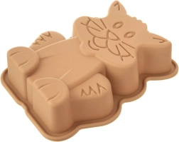 S touto formou v tvare mačky vykúzlite efektné torty, piškóty, trené aj kysnuté múčniky a tiež studené dezerty. Kvalitný silikón v béžovej farbe je pružný, nepriľnavý a odolný, takže hotový korpus ľahko vyberiete bez potrhaných okrajov a s krásne vykreslenými fúzikmi a labkami.