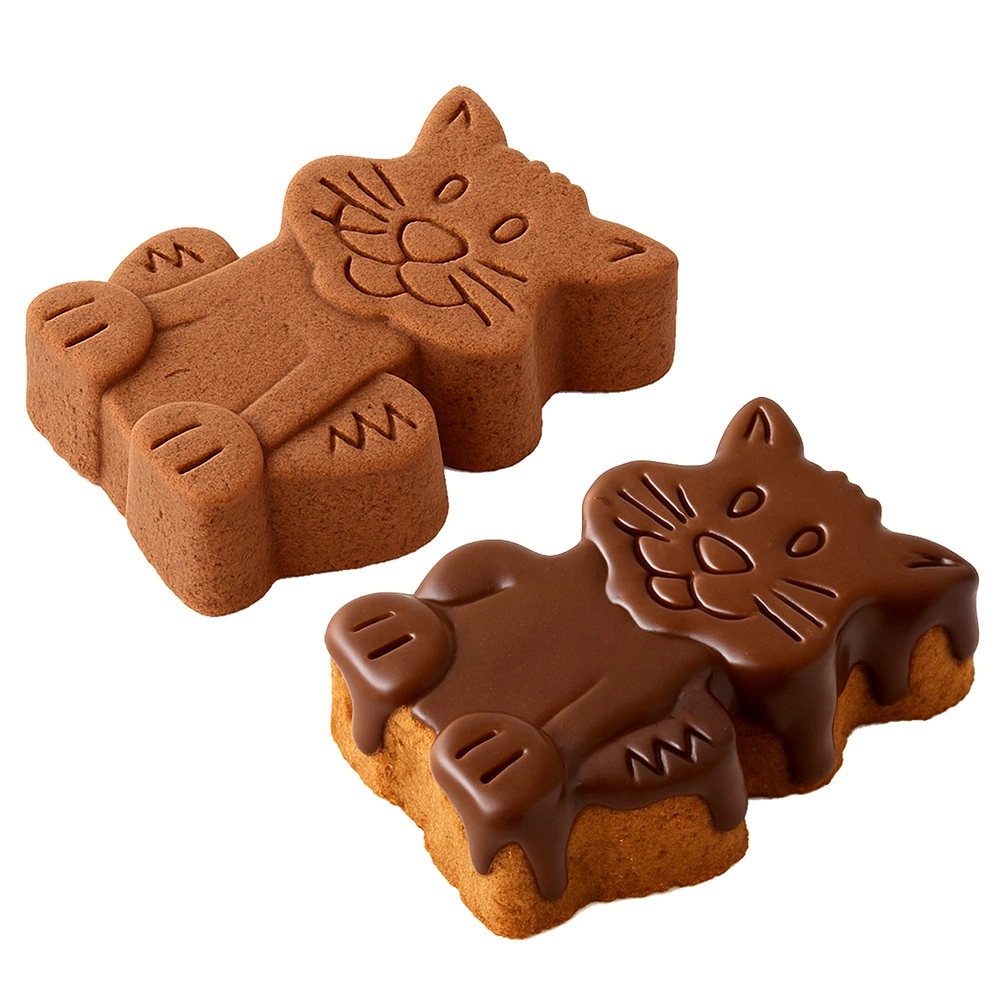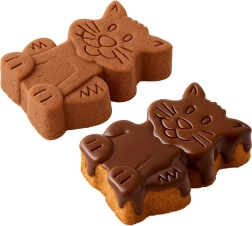 - Výhoda: rovnomerné prepečenie a jednoduché vyklopenie s detailným reliéfom mačky