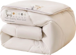 Luxusná zimná prikrývka z ovčej vlny vo veľkosti 200×220 cm ponúka prirodzené teplo, termoreguláciu a výnimočnú priedušnosť pre pokojný spánok bez prehriatia. Je ľahká, mäkká a hebká na dotyk, ideálna na chladné noci a pre milovníkov prírodných materiálov.