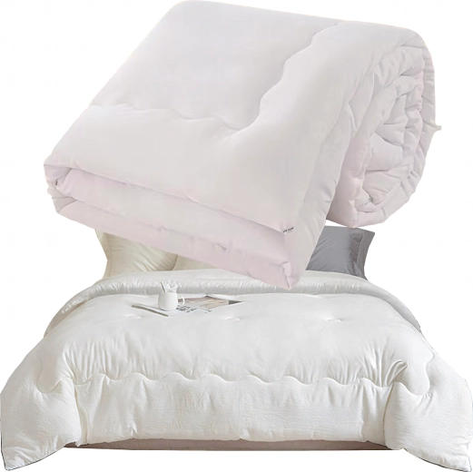 Táto biela celoročná prikrývka kombinuje ľahkosť, hrejivosť a priedušnosť, takže sa pod ňou budete cítiť komfortne bez zbytočného zaparovania. Veľkorysý rozmer 200 × 220 cm je perfektný pre manželskú posteľ a poskytne dostatok pohodlia pre dvoch.