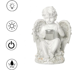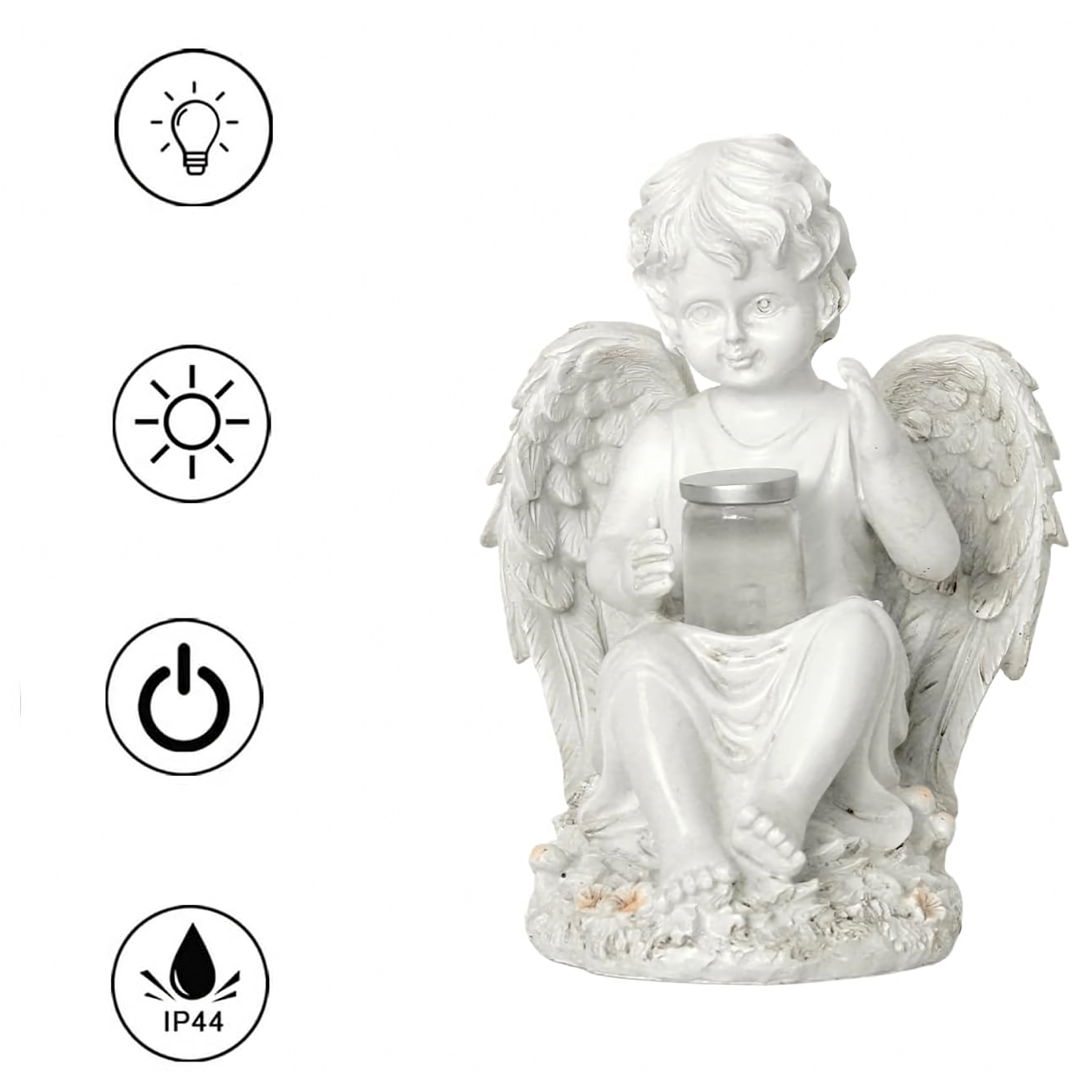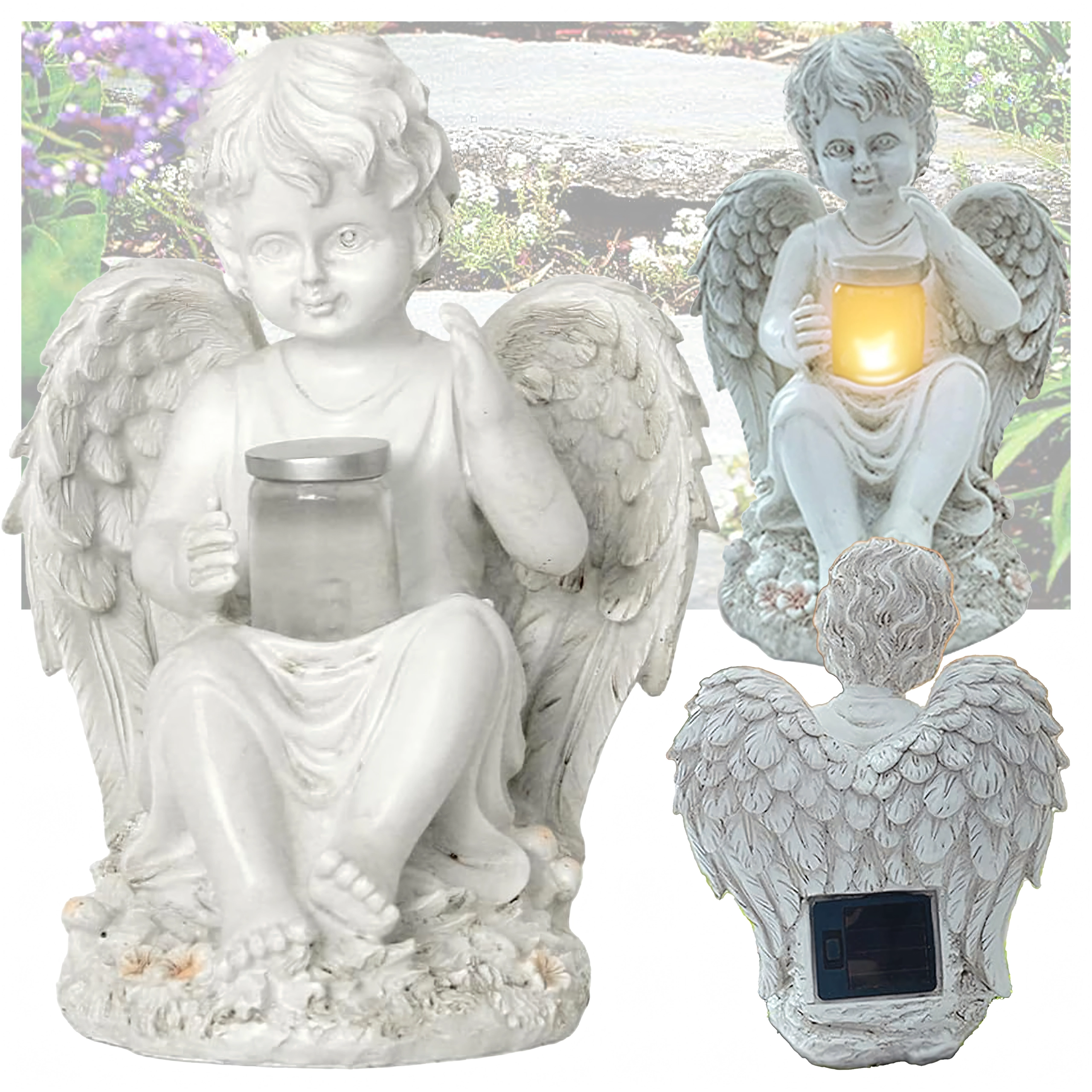 Rozprávková dekorácia pre váš exteriér: solárna anjelská figúrka z odolnej živice, ktorá cez deň zdobí a v noci jemne svieti. Ideálna do záhrady, na terasu aj ako symbolické svetielko spomienky. Solárne napájanie, teplé LED svetlo a odolnosť voči poveternosti zaručujú bezstarostnú prevádzku a dlhú životnosť.