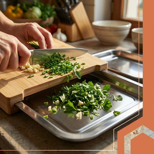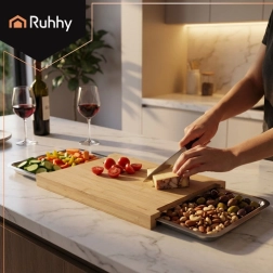 Objavte šikovnú kuchynskú dosku, ktorá zrýchli krájanie aj upratovanie. Dve výsuvné nádoby zachytia nakrájané suroviny alebo odrezky, takže pracujete čisto a efektívne. Bambusová doska je pevná, odolná voči vlhkosti a zároveň šetrná k nožom.