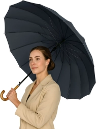 Elegantný a mimoriadne odolný dlhý dáždnik s 24 vystuženými rebrami spája klasický štýl, vysokú stabilitu vo vetre a pohodlie automatického otvárania. Veľká strecha 115 cm spoľahlivo ochráni jednotlivca aj dvojicu, vodoodolná a rýchloschnúca látka uľahčuje údržbu a drevená zakrivená rukoväť dodáva nadčasový vzhľad. Súčasťou je puzdro s popruhom cez rameno pre pohodlné nosenie.