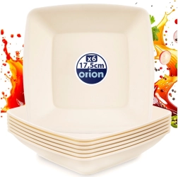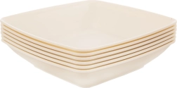 Praktická sada 6 hlbokých tanierov v modernom štvorcovom tvare na každodenné stolovanie doma aj vonku. Taniere s rozmermi 17,5 × 17,5 × 4,7 cm a objemom 500 ml sú ľahké, odolné a ľahko sa udržiavajú. Vhodné do mikrovlnnej rúry aj do umývačky riadu, ideálne na polievky, cestoviny, šaláty či jedlonádobové pokrmy. Kvalitný materiál v krémovej farbe zaisťuje odolnosť proti nárazom a prasknutiu.
