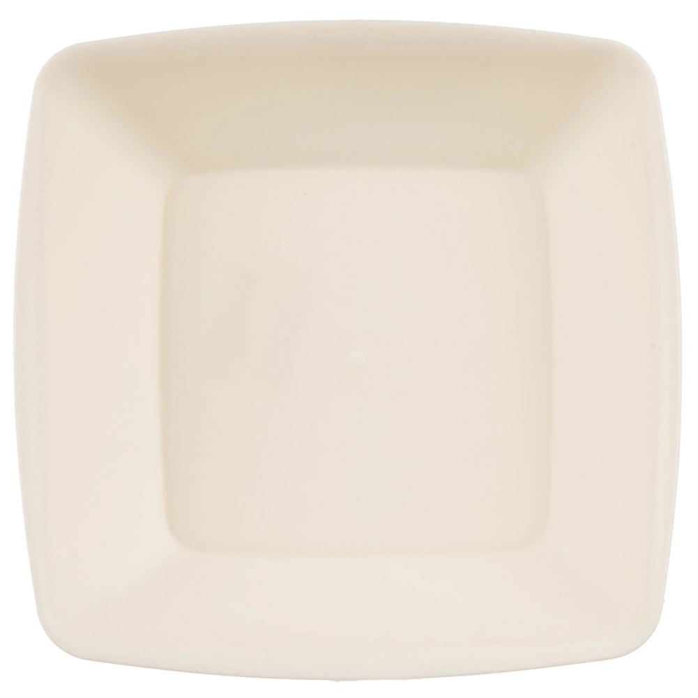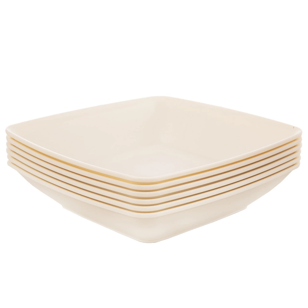 Štvorcové hlboké taniere v krémovej farbe sa ľahko ukladajú na seba, šetria miesto a sú odolné voči nárazom a pádom.