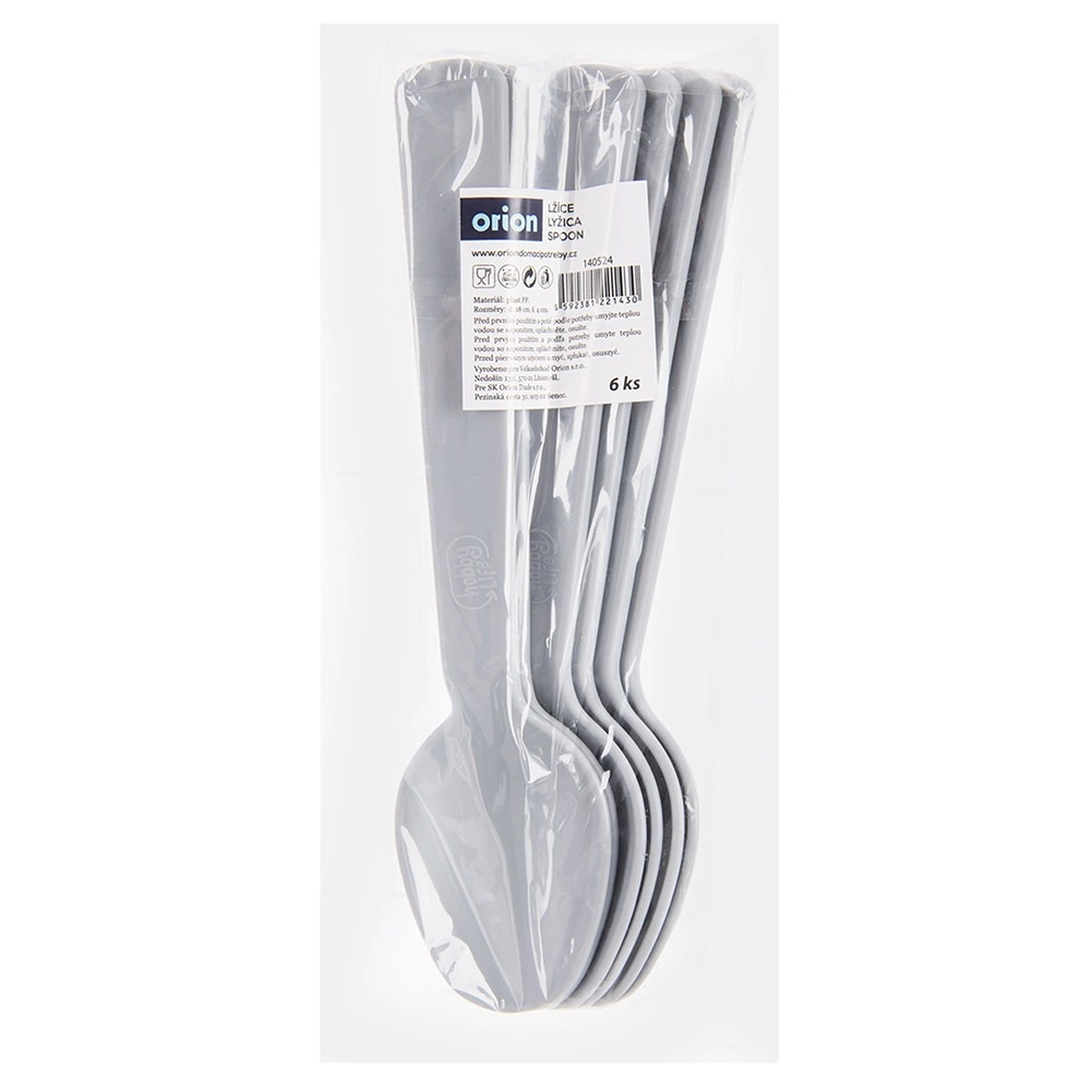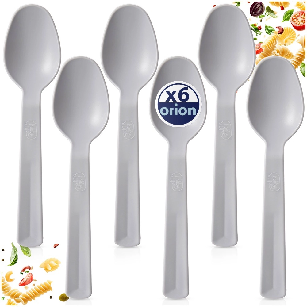 Praktická sada šiestich sivých plastových lyžíc z rady SANDY na každodenné stolovanie doma aj vonku. Sú ľahké, odolné a vďaka tvaru pohodlné pre dospelých aj deti. Lyžice možno umývať v umývačke a skvele sa hodia na pikniky, kempovanie aj bežné servírovanie jedál. Originálny produkt značky ORION.