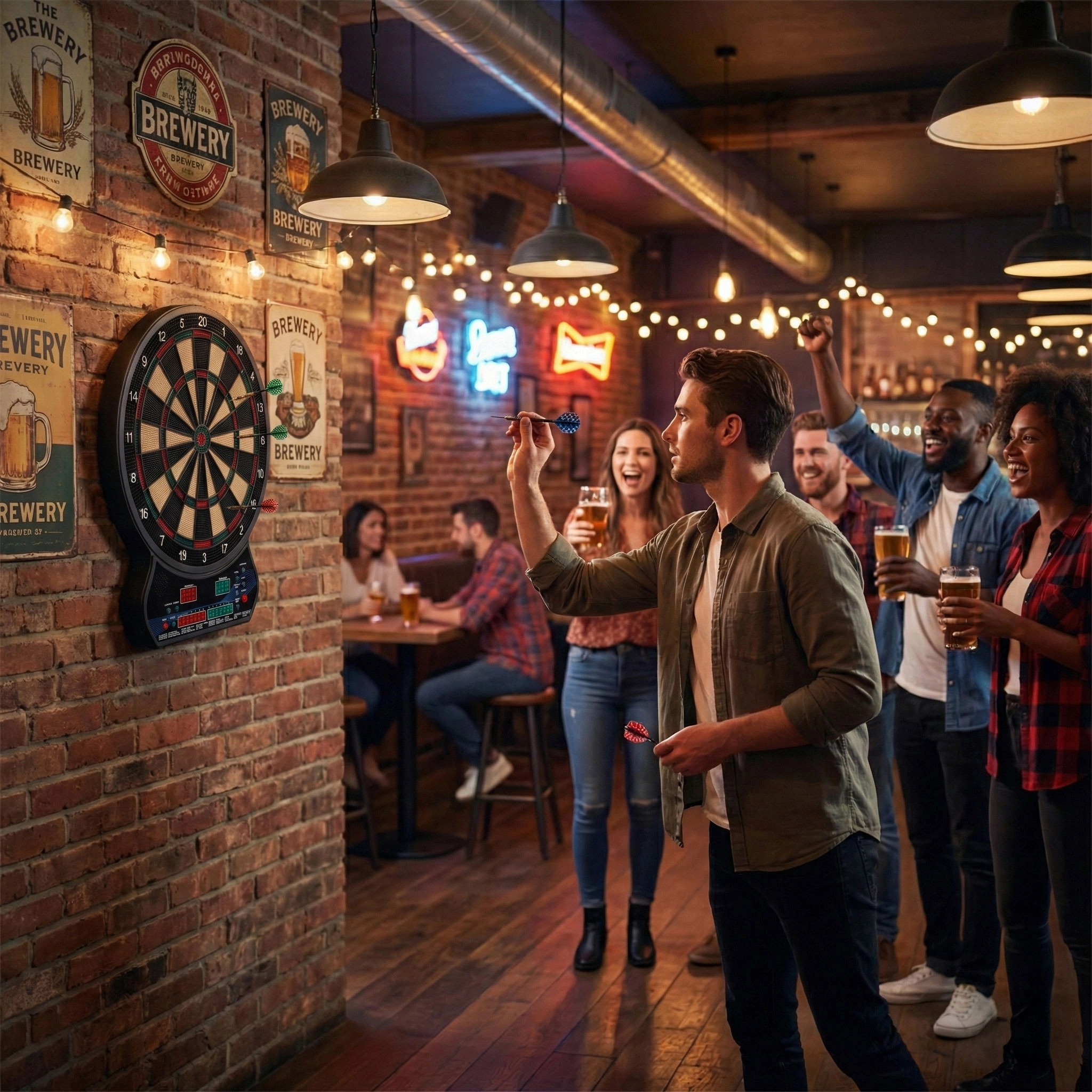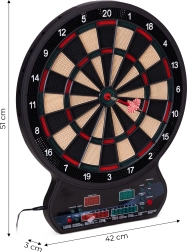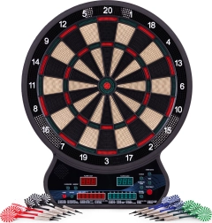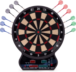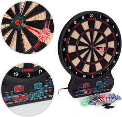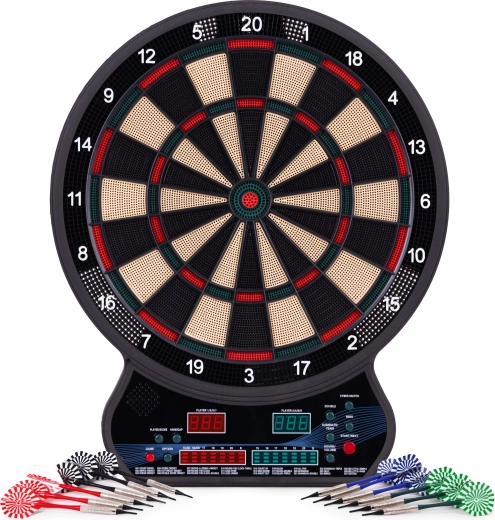 Vneste do domácnosti, kancelárie alebo hernej zóny porciu zábavy a súťaženia. Tento elektronický terč na šípky kombinuje presné snímanie zásahov, intuitívne ovládanie a široký výber herných režimov. Vďaka dvom LCD displejom máte prehľad o skóre aj aktívnom hráčovi, zatiaľ čo hlasové pokyny udržiavajú hru plynulú.