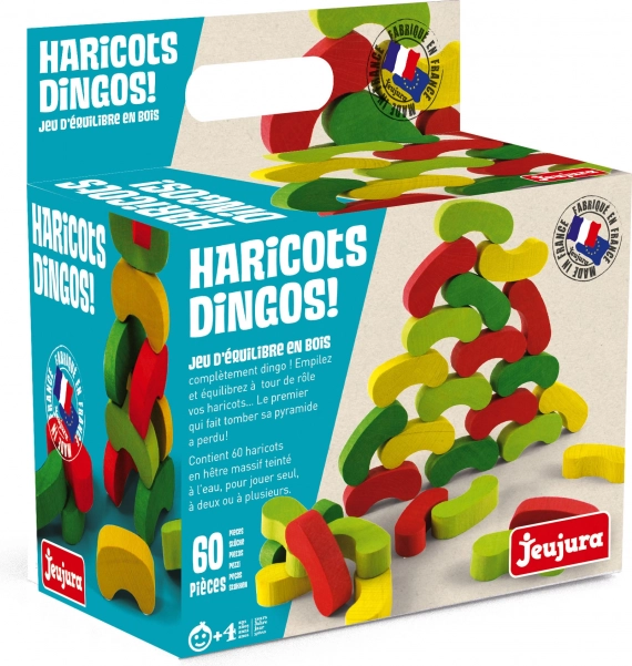 Jeujura farebné fazuľky sú chytrá a zábavná drevená hra, ktorá preverí šikovnosť malých aj veľkých. Cieľom je stavať fazuľky na seba tak, aby každá novo položená bola inej farby než dvojica pod ňou. Jednoduché pravidlá, ale prekvapivo napínavá hra pre celú rodinu.