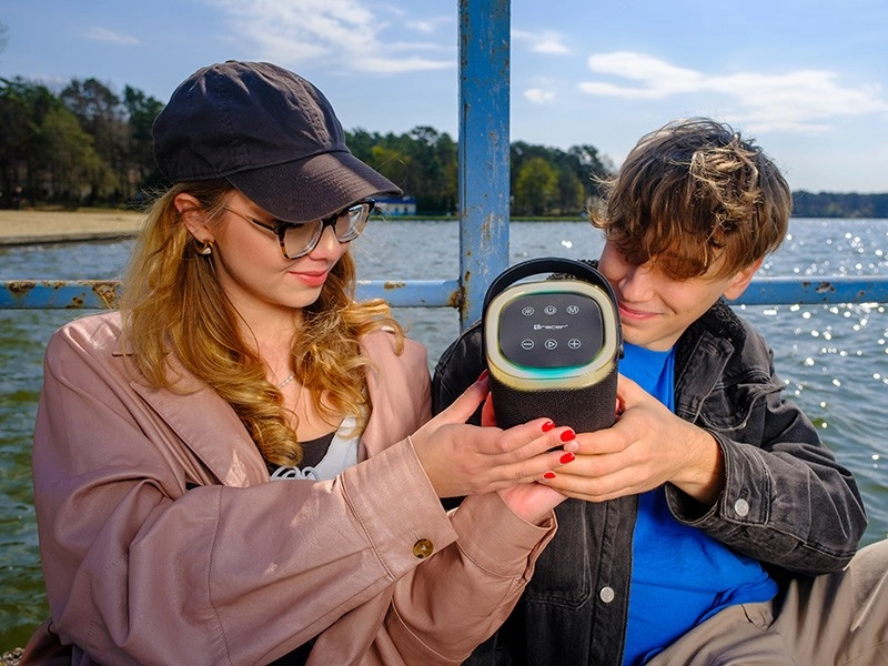 Vďaka funkcii TWS (True Wireless Stereo) prepojíte dva reproduktory do skutočného stereo systému. Posluch rozšíri tiež FM rádio a vstupy AUX, USB a microSD, takže hudbu prehráte aj bez telefónu. Krytie IPX5 chráni proti dažďu a striekajúcej vode, zatiaľ čo praktické pútko a RGB podsvietenie dodávajú štýl aj pohodlie na cestách.