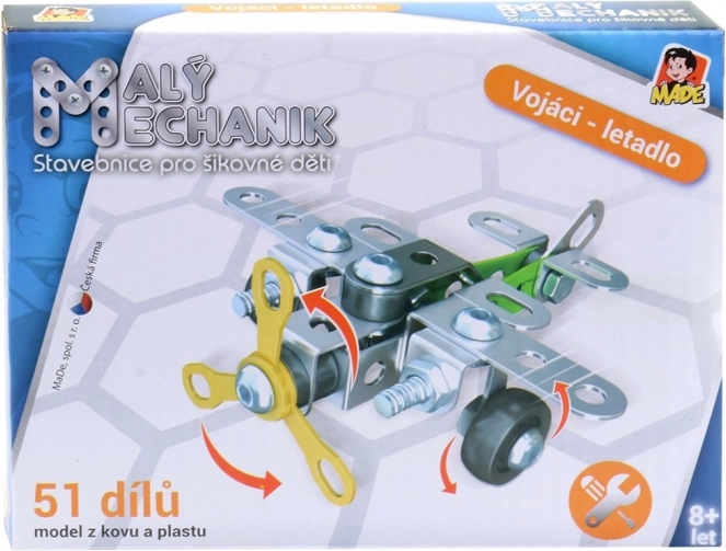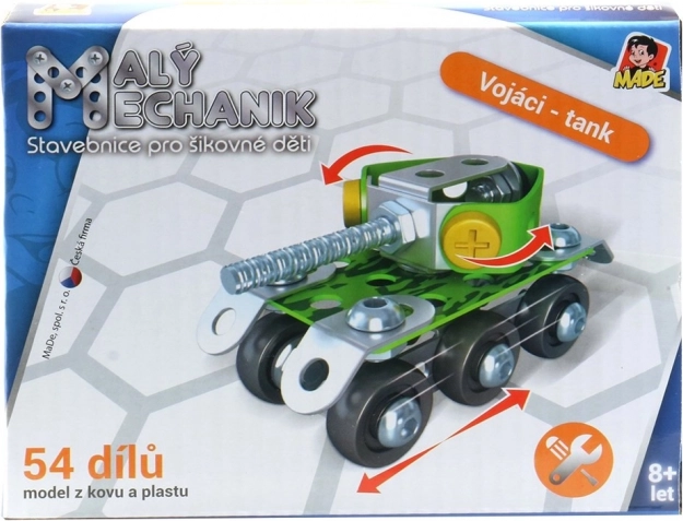 Stavebnica Malý mechanik – vojenská technika prináša deťom možnosť zostaviť realistické modely vojenskej techniky z odolných kovových dielov. Podporuje kreativitu, technické myslenie a zručnosť, a pritom baví. Vhodné pre mladých nadšencov do strojov a mechaniky.