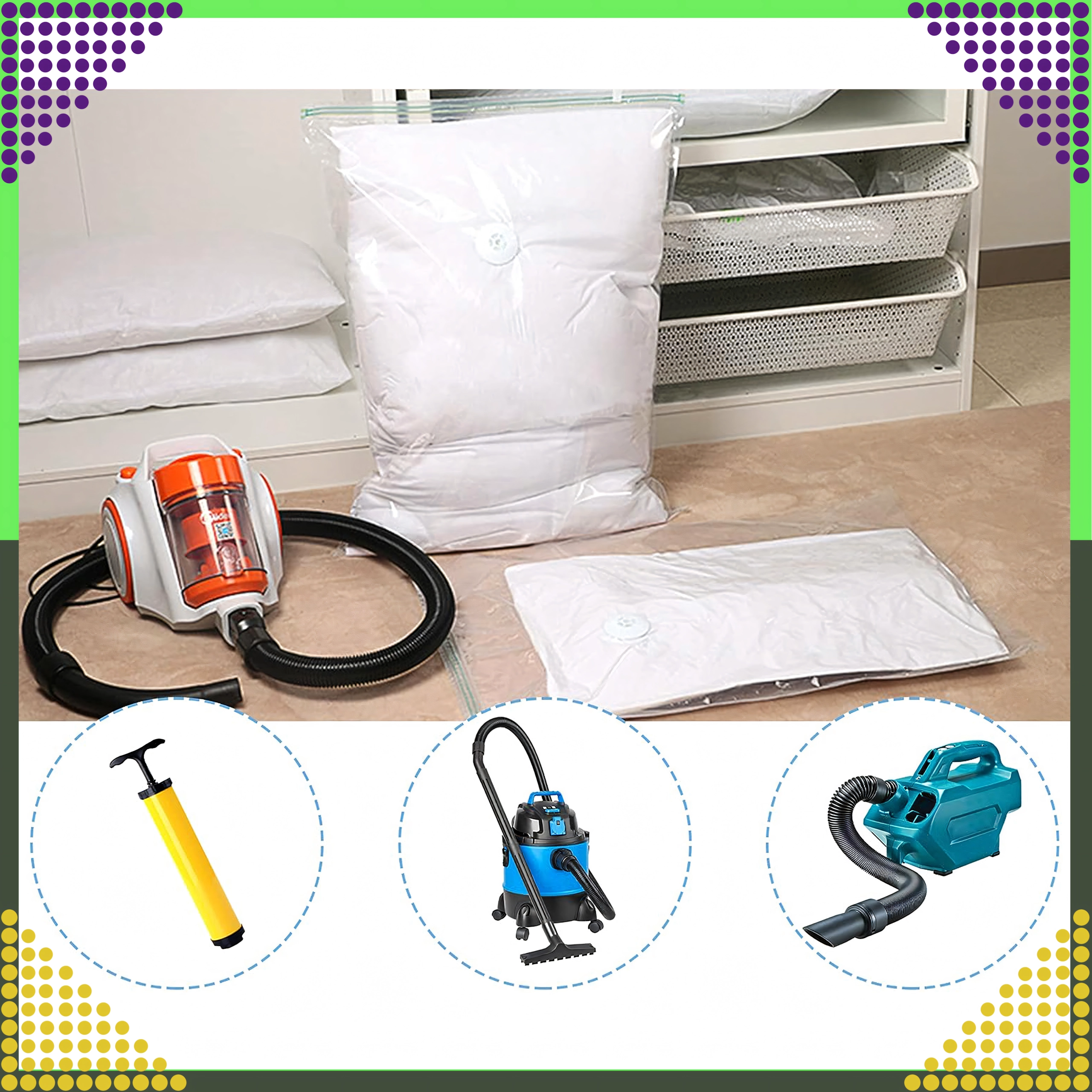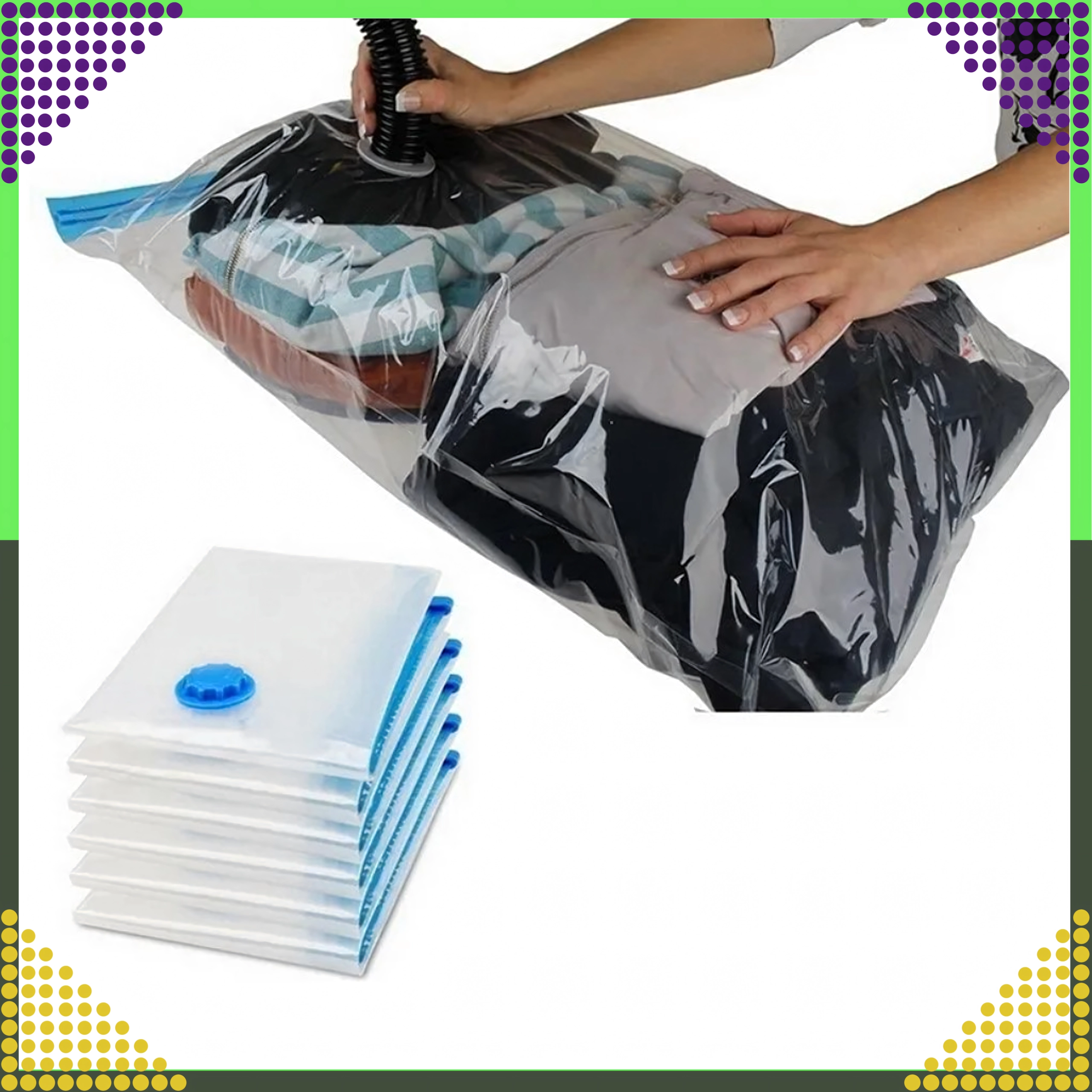 Skvele sa hodí na domáce uskladnenie, sťahovanie aj cestovanie. Sáčok je znovu použiteľný, odolný a navrhnutý na rýchle a jednoduché používanie. Ideálny na oblečenie, posteľnú bielizeň, deky, vankúše a ďalšie textílie.