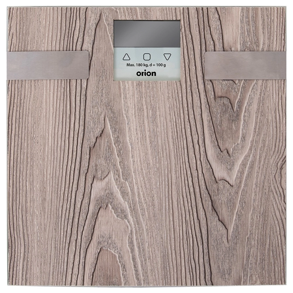 Sklenená platforma s textúrou dreva dodá vašej kúpeľni štýl. Nízky profil a široká plocha zabezpečujú stabilitu a komfort pri vážení.