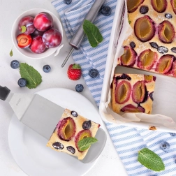 Vďaka nabrúseným hranám ľahko naporciujete a prenesiete pripravené pokrmy priamo z panvice či plechu. Materiály sú tepelne odolné a vhodné na každodenné varenie. Údržba je jednoduchá – obracačku môžete umývať v umývačke.