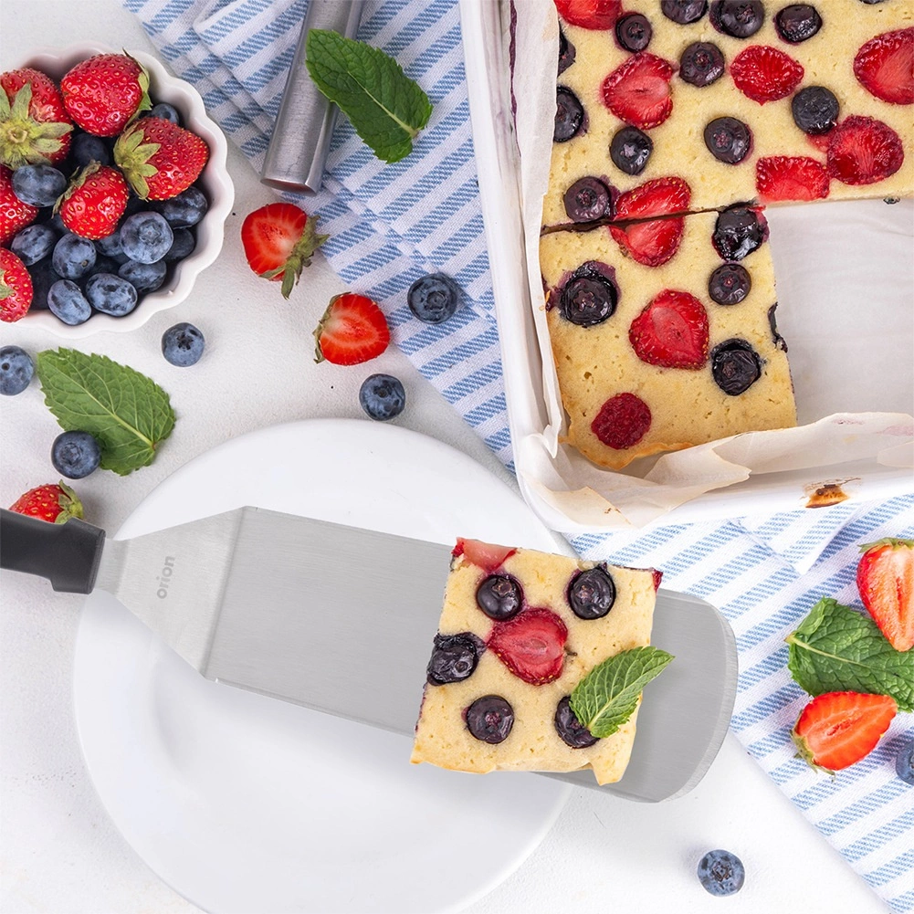 Robustná nerezová čepeľ s hladkým povrchom ľahko podeberie palacinky, burgre alebo ryby a udrží celý kus pohromade.