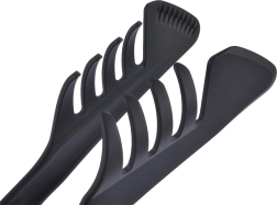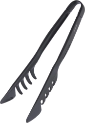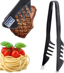 Kliešte BLACKLINE s dĺžkou 27,5 cm majú širšie, profilované konce so zúbkami pre istý úchop – bezpečne podržia špagety, zeleninu, mäso aj jemné suroviny bez pošmyknutia. Vďaka termoplastickému materiálu sú ľahké, stabilné a výborne sa ovládajú pri každodennom varení aj pri grilovaní.