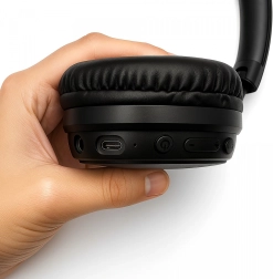 Mäkké náušníky a polstrovaný hlavový most zabezpečujú komfort aj pri dlhom počúvaní. Skladacie pánty uľahčia prenášanie.