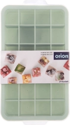 Praktická forma na ľad s priesvitným vekom v pastelovo zelenej farbe na jednoduché a čisté mrazenie. Vďaka elastickému materiálu sa kocky ľadu vyberajú bez námahy, veko zabraňuje rozlievaniu a pohlcovaniu pachov a forma naraz pripraví až 24 kociek. Vhodná do umývačky riadu a ideálna na ľad, šťavy, sorbety aj vývary.