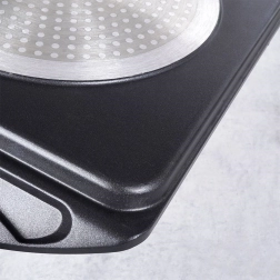 Odolný povrch bráni pripaľovaniu, uľahčuje obracanie surovín a čistenie. Umožní variť s minimom oleja a zachovať prirodzenú chuť jedál.