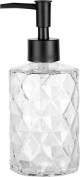 Praktický a estetický dávkovač na tekuté mydlo alebo prostriedok na riad kombinuje kvalitné číre sklo s matnou čiernou pumpou. Vďaka reliéfnemu povrchu skvele padne do ruky a dodá umývadlu či kuchynskej linke moderný akcent.