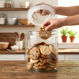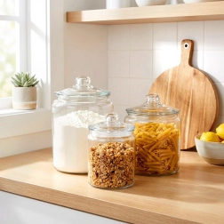 Odolné číre sklo umožňuje okamžitú kontrolu stavu zásob a krásne vystaví cestoviny, múku alebo sušienky na kuchynskej linke.