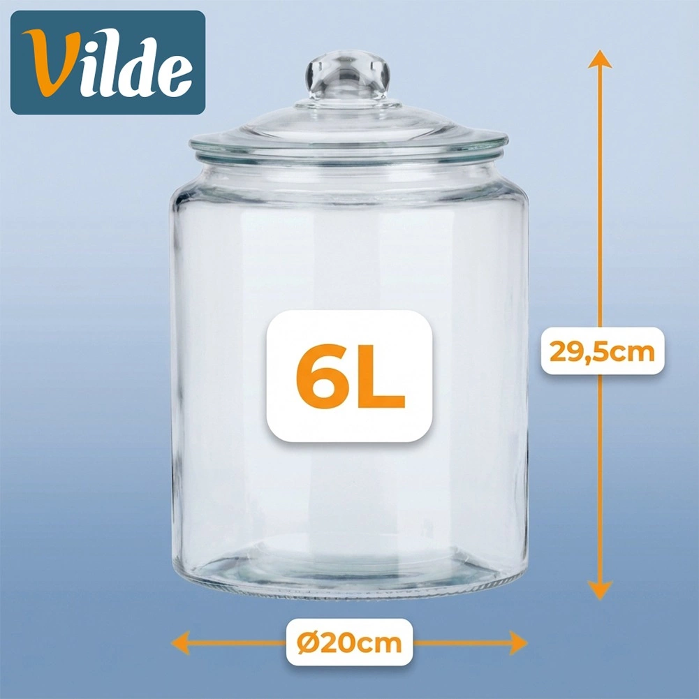 Veľkoobjemová sklenená dóza elegantne kombinuje vzhľad a funkčnosť. Vďaka priehľadnému, hrubému sklu máte nad obsahom vždy perfektnú kontrolu, zatiaľ čo sklenené veko s tesnením chráni potraviny pred vlhkosťou a stratou vône. Rozmery 20 × 20 × 29,5 cm ponúkajú dostatok miesta pre suroviny aj domáce dobroty.