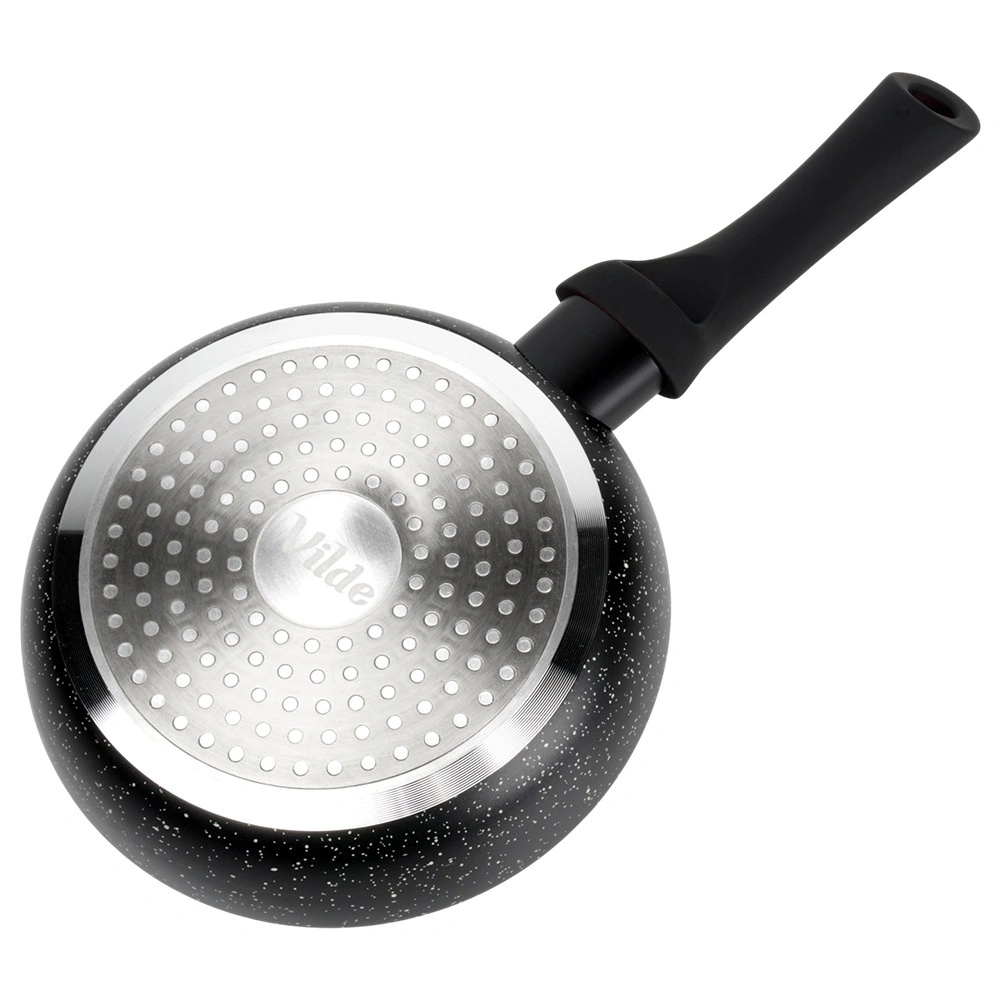 Táto štýlová panvica s granitovou neprilnavou vrstvou je ideálna na vyprážanie vajec, zeleniny aj mäsa s minimom tuku. Hliníkové telo zaisťuje rýchly prenos tepla a úsporné varenie, zatiaľ čo moderné čierne prevedenie skvele zapadne do každej kuchyne.