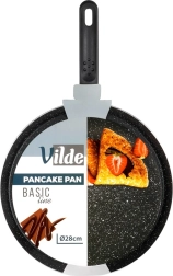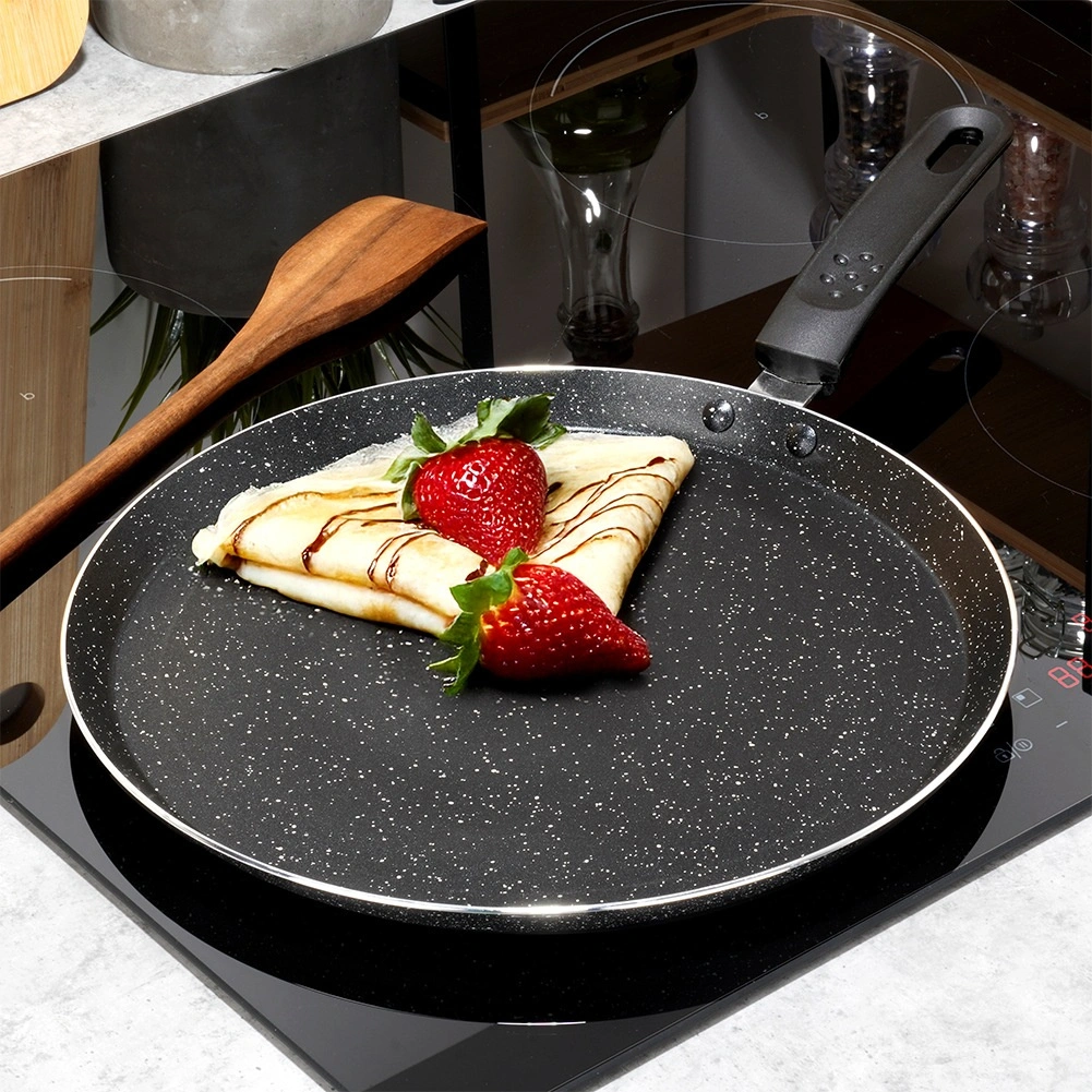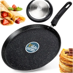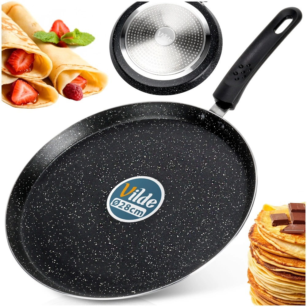 Ľahká a odolná palacinková panvica s priemerom 28 cm s granitovou nepriľnavou povrchovou úpravou na nízkotučné vyprážanie. Ponúka rýchly a rovnomerný rozvod tepla, ergonomickú rukoväť, ktorá sa nezahrieva, a je vhodná na všetky typy sporákov vrátane indukcie. Ľahko sa čistí a je vhodná do umývačky.