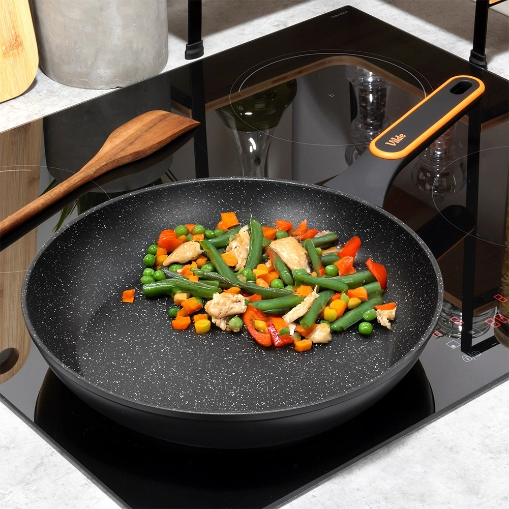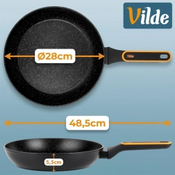 Kvalitná granitová panvica s priemerom 28 cm z liateho hliníka na každodenné varenie. Ponúka nepriľnavý povrch na zdravé smaženie s minimom tuku, rýchlu a rovnomernú distribúciu tepla a ergonomickú, nešmykľavú rukoväť. Vhodná na všetky typy sporákov vrátane indukcie a do umývačky riadu.