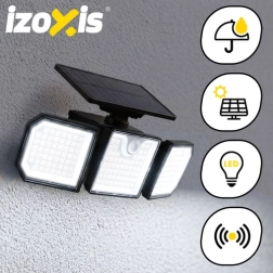 Výkonné solárne svetlo IZOXIS so 167 LED a svietivosťou 500 lm spoľahlivo osvetlí záhradu, vchod, fasádu aj príjazd. Vďaka solárnemu panelu 5,5 V / 1,5 W a batérii 1800 mAh sa cez deň nabíja a po zotmení svieti automaticky. Senzor pohybu, senzor súmraku a 3 režimy zaistia svetlo len vtedy, keď je potrebné. Odolnosť IP65 a bočné reflektory zaručujú široký záber a dlhú životnosť bez káblov a nákladov na elektrinu.