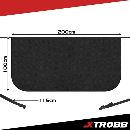 Praktická antimrazová clona XTROBB s rozmermi 200 × 100 cm chráni čelné sklo pred ľadom, snehom a námrazou. Vďaka vodoodolnému a mrazuvzdornému materiálu sa na sklo neprilepí, rýchlo ju zložíte bez škrabania a šetrite čas aj sklo bez rýh od škrabky. Nastaviteľný popruh s klipom a uchytenie cez dvere stabilizujú clonu aj vo vetre – ideálne pre SUV, VAN a BUS.