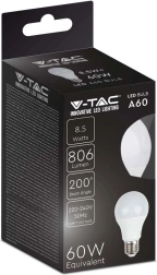 Úsporná LED žiarovka V‑TAC 8,5 W s päticou E27 a teplou farbou svetla 3000 K je ideálnou náhradou za klasickú 60W žiarovku. Ponúka svetelný tok 806 lm, moderné SMD LED pre spoľahlivý výkon, dlhú životnosť a okamžitý nábeh na plný jas – skvelé riešenie pre domácnosti aj komerčné priestory.