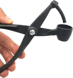 Robustné kovové telo s čapom a pákovým mechanizmom poskytuje dlhú životnosť a čistý priechod kôstky.