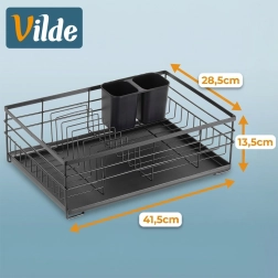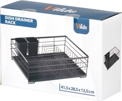 Elegantný odkvapkávač v industriálnom štýle loft udrží vašu kuchyňu čistú a organizovanú. Robustná kovová konštrukcia v čiernom prevedení, vyberateľná plastová odkvapkávacia tácka a dvojkomorový košík na príbory zabezpečujú pohodlné a hygienické sušenie riadu po ručnom umývaní.