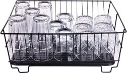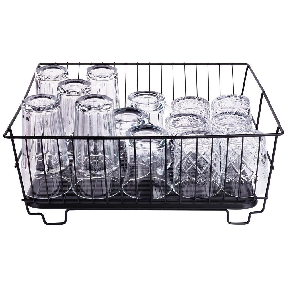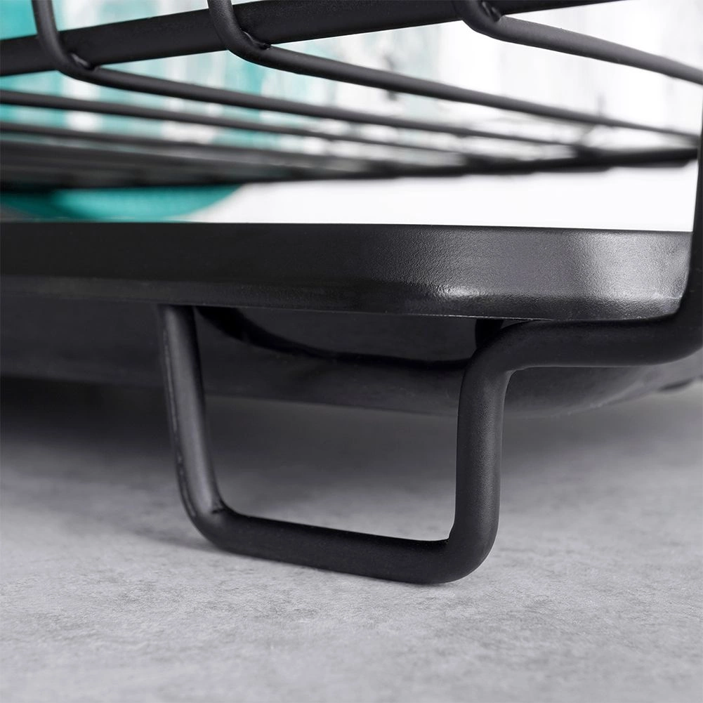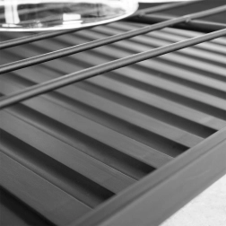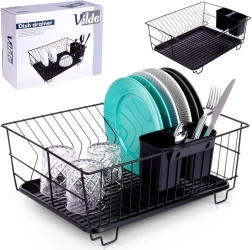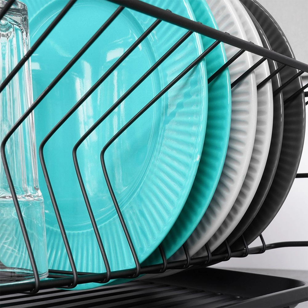 Štýlový a funkčný odkvapkávač na riad z odolného kovu v matne čiernej farbe kombinuje moderný loftový dizajn s každodennou praktickosťou. Poskytuje vyhradené sloty až pre 15 tanierov a dostatok priestoru pre poháre, misky aj väčšie kúsky riadu. Vyberateľná plastová odkvapkávacia vaňa zachytí vodu a udrží pracovnú plochu suchú.