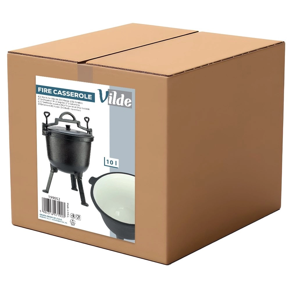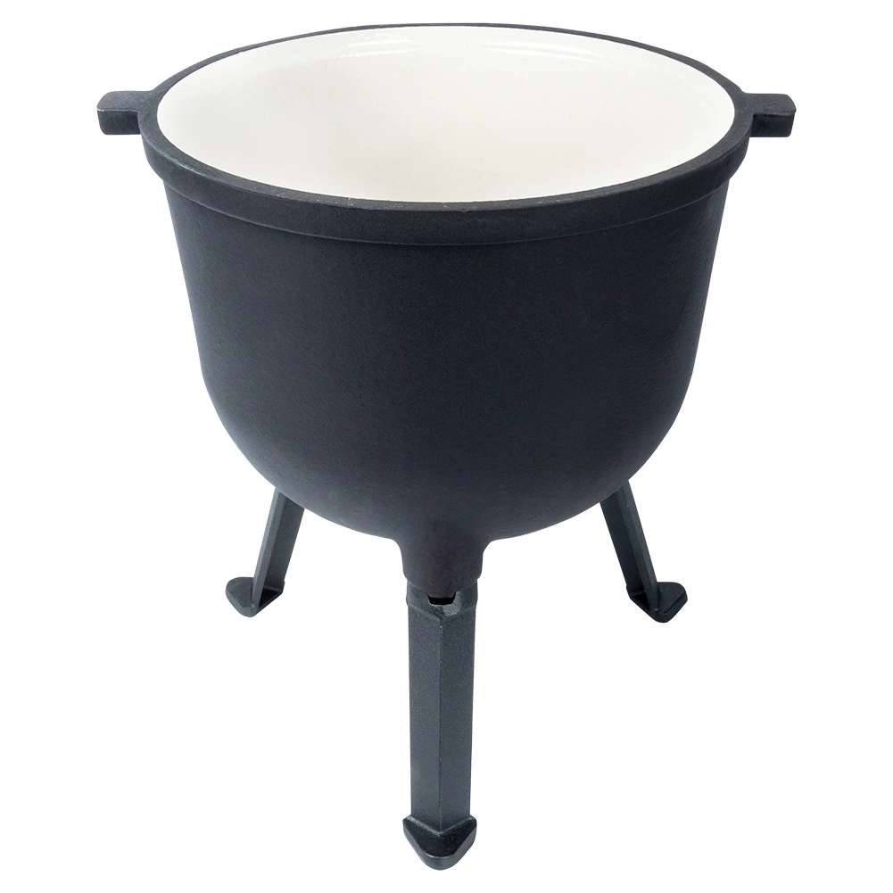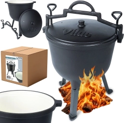 Robustný vonkajší kotlík z liatiny s vekom a stabilnými tromi nožičkami je ideálny na varenie nad ohňom, na grile aj na kempovanie. Vďaka smaltovanému vnútru sa ľahko čistí a jedlo sa nepripáľa. Vysoká akumulácia tepla a rovnomerné rozloženie zaistia rýchle a šťavnaté varenie. Objem 10 l, priemer 28,5 cm, pohodlné prenášanie vďaka masívnej rukoväti a bočným úchytom.