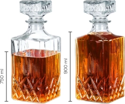 Objavte nadčasovú karafu, ktorá kombinuje praktickosť a estetiku. Štvorcové telo s výrazným dekoratívnym brusom skvelo vynikne na domácom bare a zaistí bezpečné a elegantné servírovanie whisky, rumu či iných destilátov. Vďaka optimálnemu úžitkovému objemu 750 ml sa s karafou pohodlne manipuluje a nápoj má dostatok priestoru na rozvinutie vône.