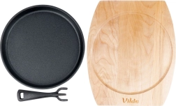 Jednoduchá manipulácia vďaka odnímateľnej rukoväti a presne padnúcej drevenej podložke, ktorá chráni dosku stola pri servírovaní horúcich jedál.