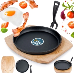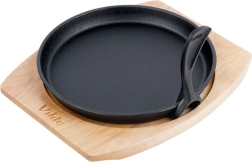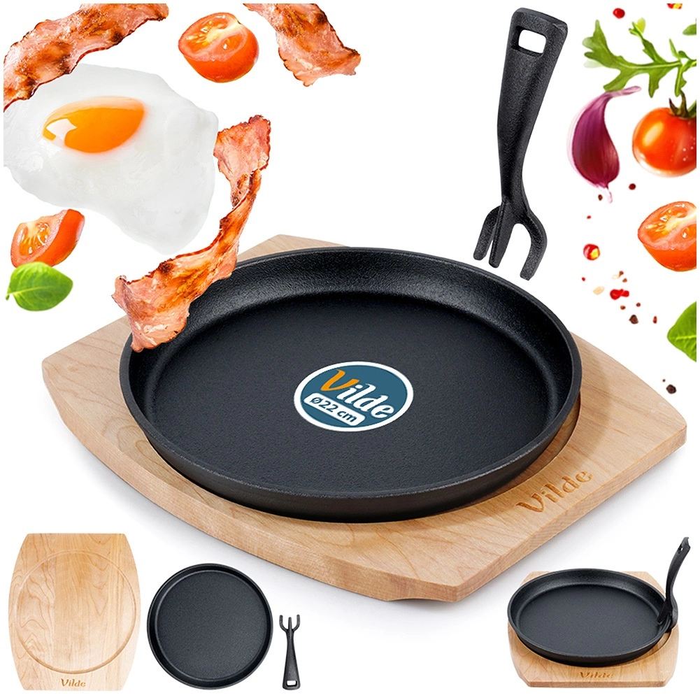 Táto okrúhla liatinová panvica s rozmermi 22 × 2,3 cm je stavaná na každodenný výkon – od intenzívneho restovania až po pomalé zapekanie. Masívna liatina výborne akumuluje teplo a udrží pokrmy dlhšie teplé, čo oceníte pri servírovaní priamo na stôl. Súčasťou je odnímateľná rukoväť na ľahké prenášanie a skladovanie a presne padnúca drevená podložka (27 × 23 cm), ktorá chráni povrch stola.