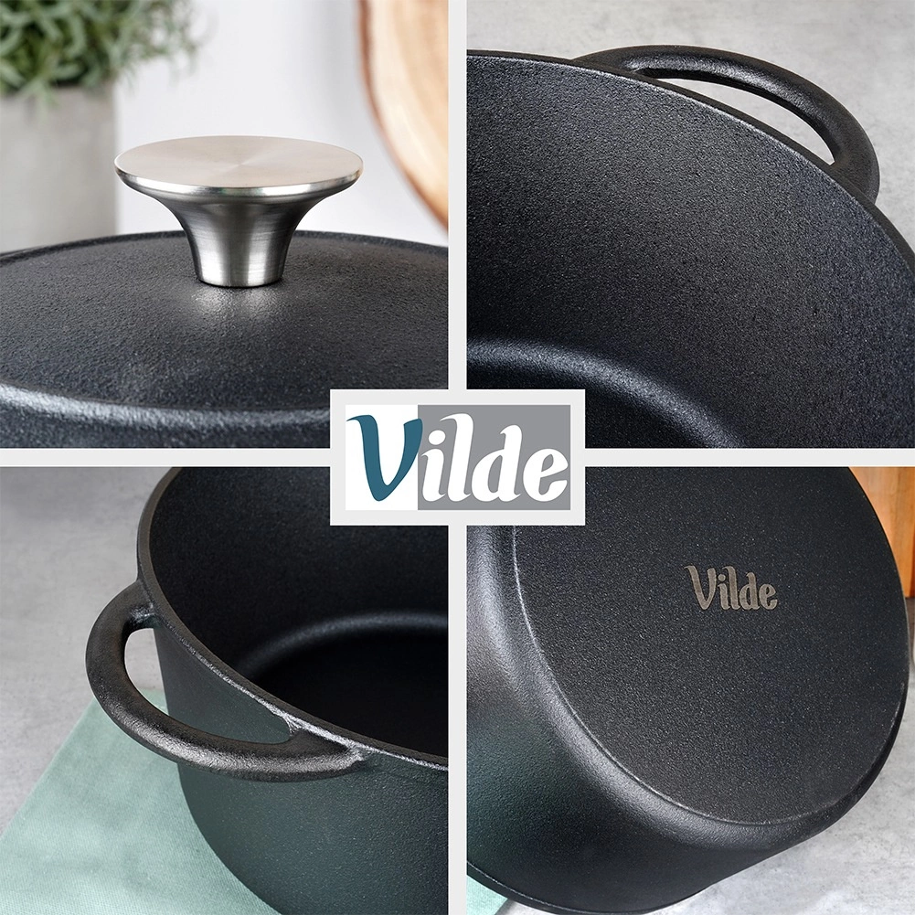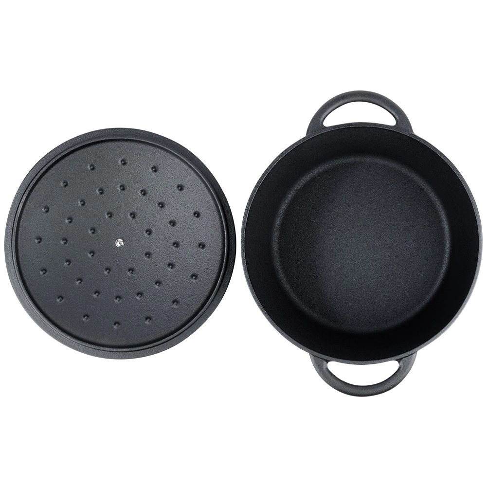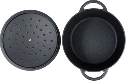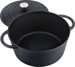 Telo aj pokrievka z masívnej liatiny zabezpečujú rovnomerné zohrievanie a dlhé udržanie teploty – ideálne pre šťavnaté pečienky, guláše a dusené jedlá.