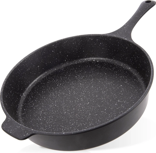 Hlboká panvica GRANDE s priemerom 28 cm a objemom 3 l z liateho hliníka na každodenné varenie. Má nepriľnavý žulový povrch Pfluon Granit bez PFOA a PTFE, je vhodná na všetky typy sporákov vrátane indukcie, do rúry aj umývačky. Robustná jednoliata konštrukcia s pohodlnou rukoväťou zaisťuje rovnomerné rozloženie tepla a rýchle, úsporné vyprážanie a dusenie.