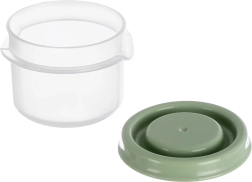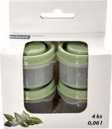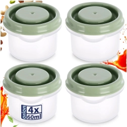 Praktická sada štyroch malých kelímkov s objemom 50 ml s priehľadným telom a zelenými viečkami je ideálna na omáčky, dipy, koreniny aj bylinky. Vďaka tesným viečkam udržia obsah čerstvý a bez zápachov, sú vhodné do mrazničky, chladničky aj mikrovlnky (bez viečka) a možno ich umývať v umývačke.