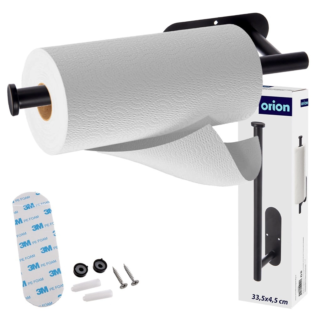 Praktický nástenný držiak na papierové utierky z odolného kovu v čiernej farbe šetrí miesto a umožňuje rýchle, pohodlné odtrhávanie jednou rukou. Vďaka dvom možnostiam montáže (3M bez vŕtania alebo skrutky) sa hodí do kuchyne, kúpeľne aj kancelárie. Univerzálny rozmer 33,5 × 9,2 × 4,5 cm je kompatibilný s bežnými rolkami a stabilná konštrukcia zaistí dlhú životnosť.