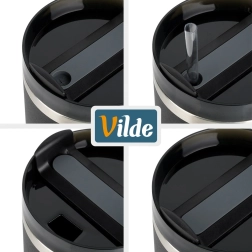Viečko s otočným mechanizmom a silikónovým tesnením bráni pretekaniu a ponúka dve možnosti pitia: cez slamku alebo cez náustok bez slamky. Protišmykové prvky na ušku zlepšujú istotu úchopu. Pre maximálny efekt uchovávania teploty odporúčame pred použitím prepláchnuť hrnček horúcou či studenou vodou a plniť približne na 90 % objemu.