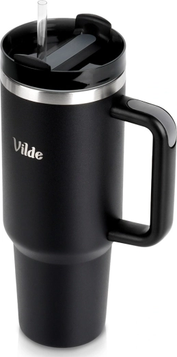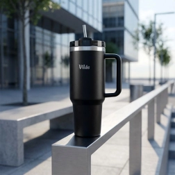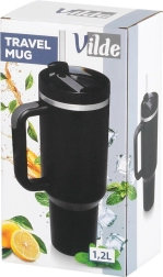 Veľkoobjemový termohrnček 1,2 l udrží vaše nápoje horúce až 12 hodín a studené až 8 hodín vďaka dvojitej vákuovej izolácii. Má pohodlné ergonomické ucho, tesniace viečko s otočným uzatváraním a otvor na slamku pre jednoduché pitie na cestách.