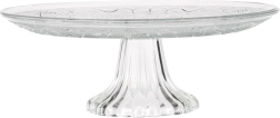 Sklenená patera na nohe je ideálna na servírovanie a prezentáciu tort, koláčov, zákuskov aj slaných pochúťok. Klasický okrúhly tvar s dekoratívnym reliéfom dokonale ladí s každým prestieraním a podčiarkuje vzhľad podávaných dobrôt.