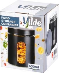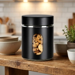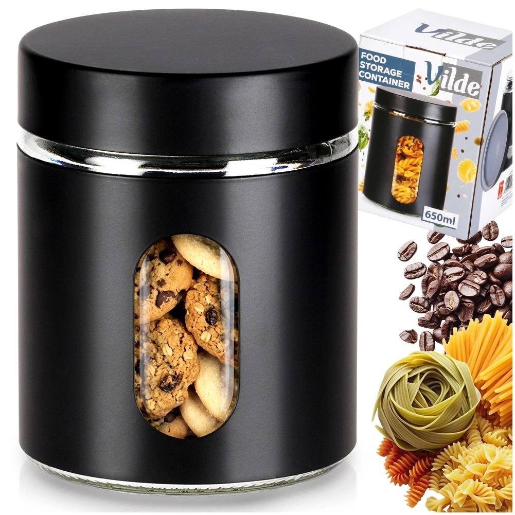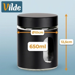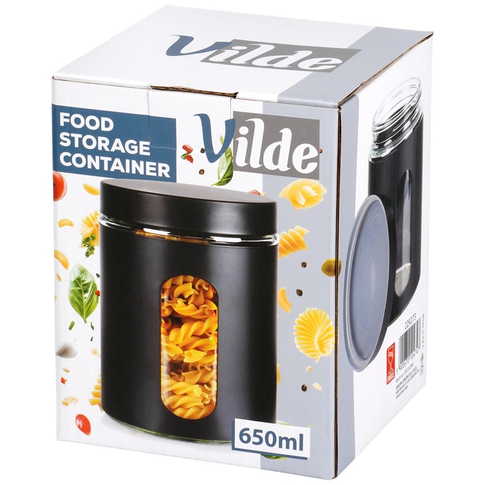 Rozmery 10 × 12,5 cm a objem 650 ml poskytujú ideálnu kapacitu na každodenné použitie. Odolné sklo sa ľahko udržiava a čierny plášť dodáva štýl aj lepší úchop. Dóza pomáha udržať kuchyňu prehľadnú a potraviny dlhšie čerstvé a voňavé.