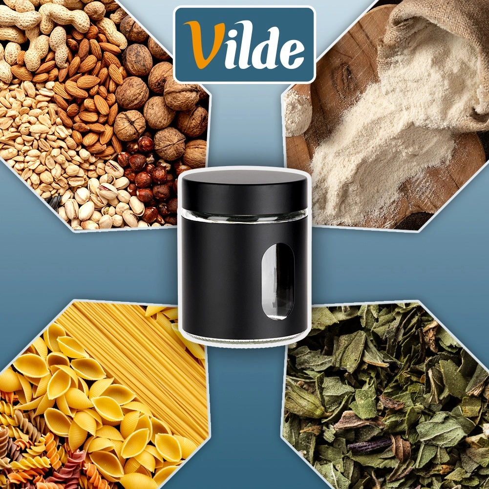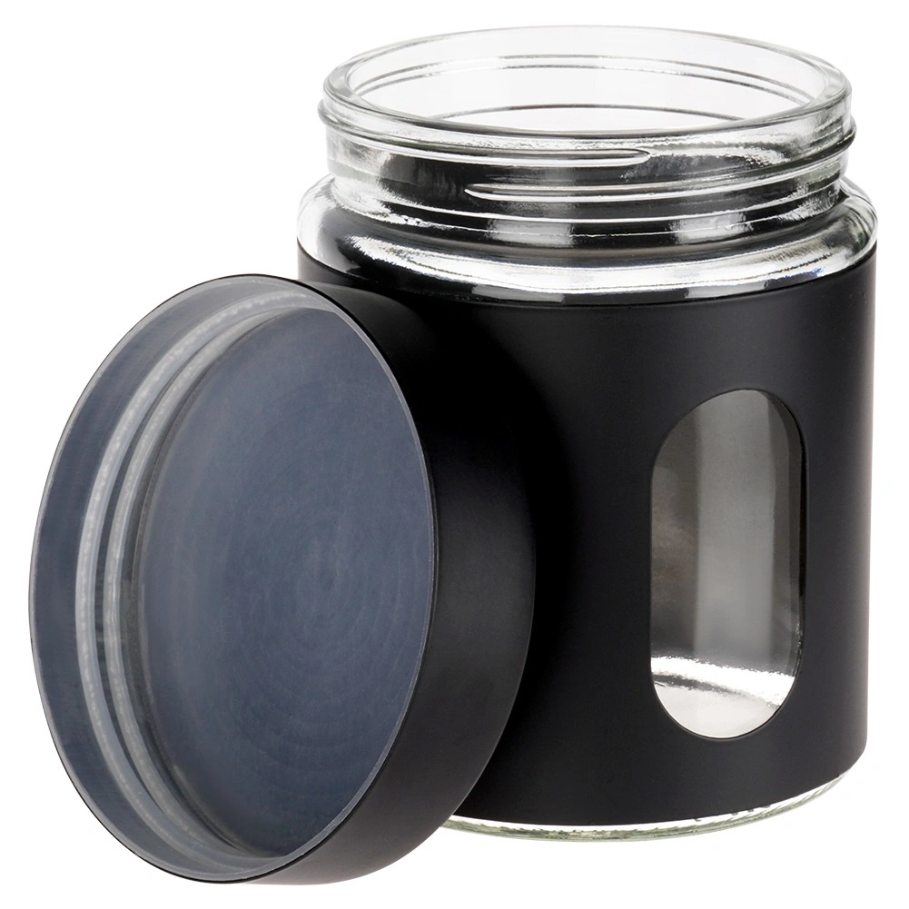Kombinácia číreho skla a čierneho ochranného rukáva zabezpečuje moderný vzhľad, lepší úchop a bezpečné skladovanie sypkých potravín.