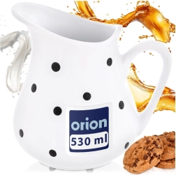 Praktický a elegantný džbánik z kvalitnej keramiky kombinuje funkčnosť a estetiku na každodenné použitie doma aj v gastronómii. Biely povrch s čiernymi bodkami pôsobí nadčasovo a ľahko sa kombinuje s ďalším riadom. Objem 480 ml je ideálny na podávanie nápojov aj menšieho množstva omáčok.