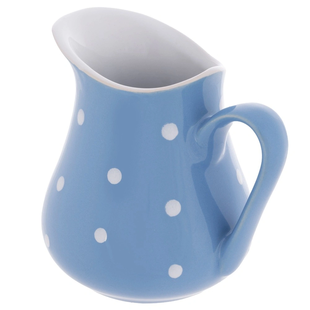 Univerzálny keramický džbánik sa hodí na vodu, limonádu, víno, mlieko aj smotanu, rovnako ako na servírovanie omáčok. Vďaka kompaktným rozmerom sa skvele uplatní pri raňajkách, čaji o piatej aj pri domácich oslavách. Modrá glazúra s bielymi bodkami dodá prestretému stolu hravý a elegantný akcent.