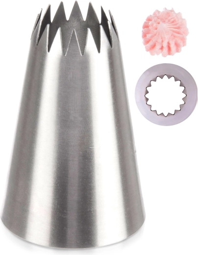 Táto kvalitná nerezová tylka s tvarom otvorenej hviezdy umožní vytvárať dekorácie s výraznými ryhami – ideálna na krémy, maslové polevy aj šľahačku. Vďaka univerzálnemu základu pasuje na väčšinu jednorazových aj opakovane použiteľných cukrárskych vreciek a zaistí presný, plynulý výstup krému.
